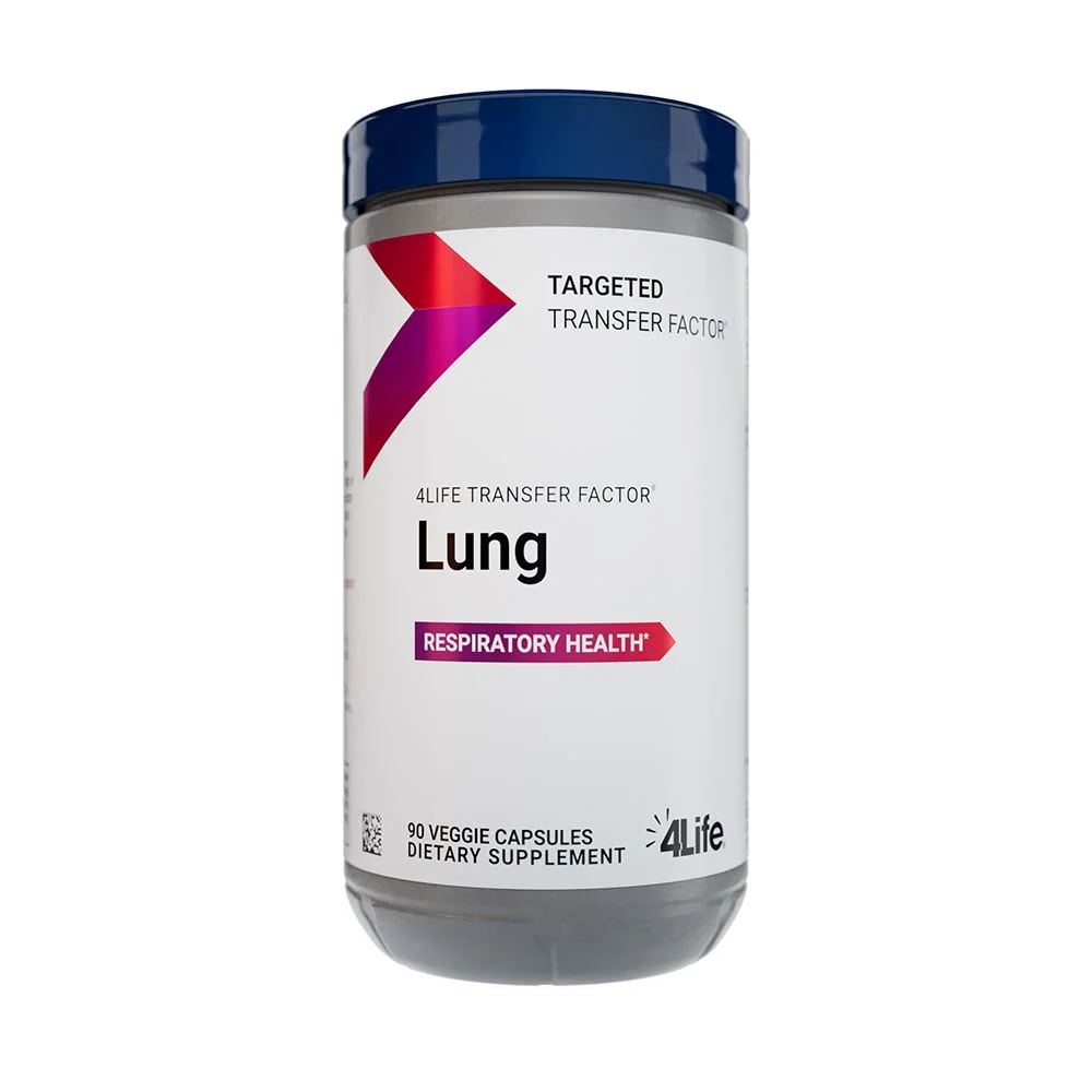 4Life Transfer Factor Lung respalda el sistema respiratorio y puede protegerte de los patógenos en el aire, la contaminación y la mala calidad del aire. Este producto es parte de la línea Targeted Transfer Factor® por lo que también contiene 4Life Transfer Factor Tri-Factor® Formula para educar, mejorar y dar equilibrio a tu sistema inmunitario.*